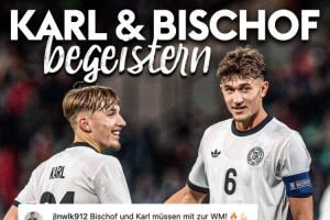 此役,来自拜仁的双子星卡尔和比朔夫贡献了极佳的表现:17岁的卡尔首次入选德国U21,本场比赛贡献2球。20岁的比朔夫更是担任德国队的场上队长,贡献3球1助。在数据机构Sofascore的赛后评分中,二人均得到了10分满分。